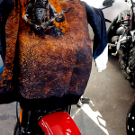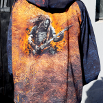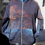 Diese Jacke habe ich aus einem besonderen Motiv-Stoff von der Firma „VerNÄHbar“ genäht. Sie verfügt über eine Kapuze und aufgesetzte vordere Taschen. Ich habe die Jacke mit einem schwarzen Uni Sweatstoff gefüttert und den Reisverschluss von innen mit einem passenden Beleg versäubert.